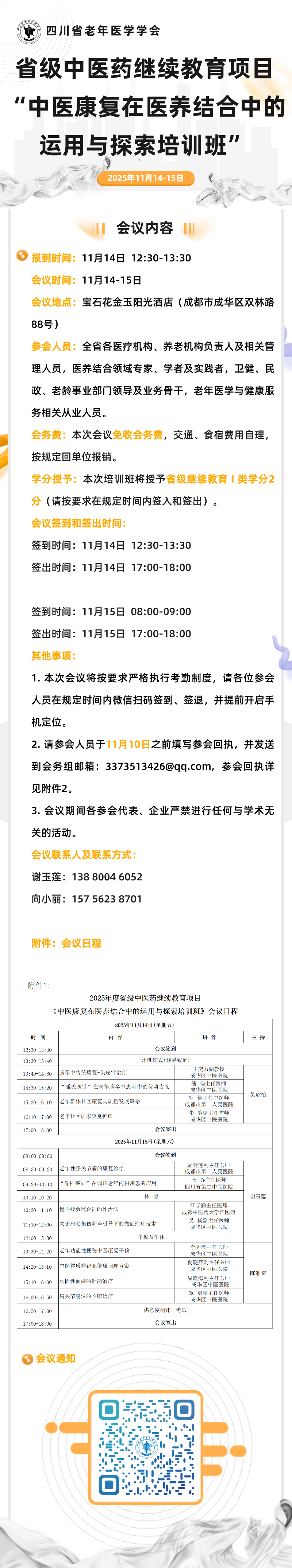 【会议通知】| 关于举办省级中医药继续教育项目“中医康复在医养结合中的运用与探索培训班”的通知
